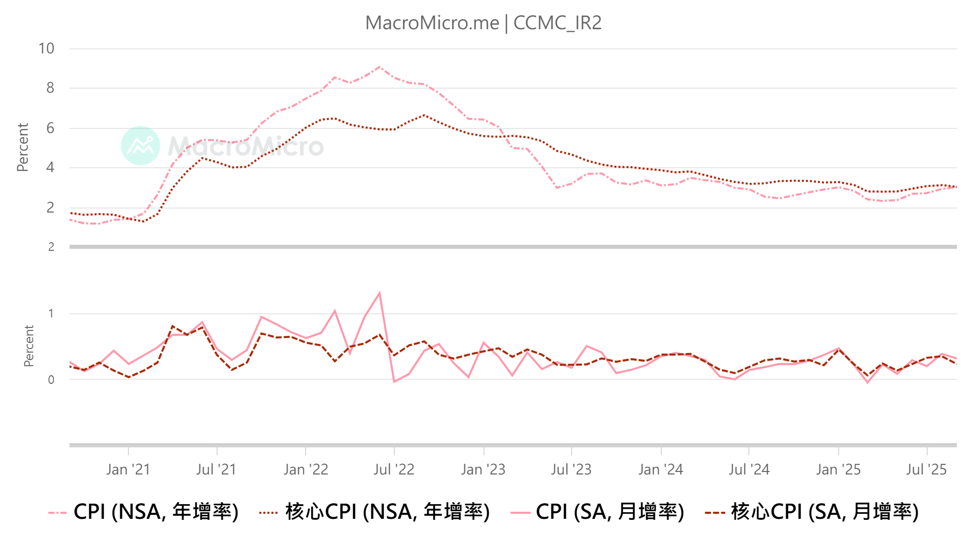 - CPI月增率: 降至0.3%,低於預期及前值的0.4% 。