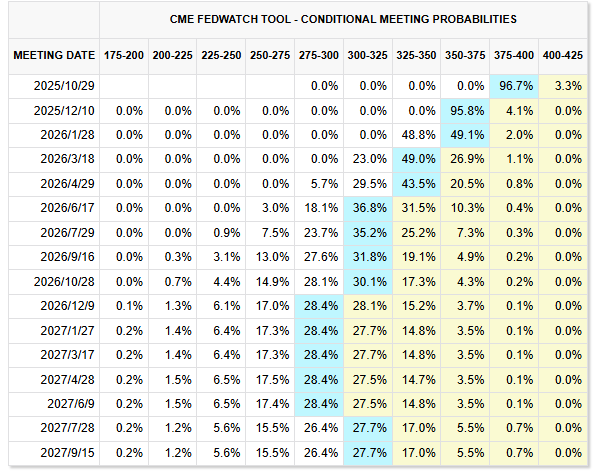 - 本次數據強化市場信心,FedWatch顯示,投資人預期FOMC將於10月及12月會議各再降息1碼 。
