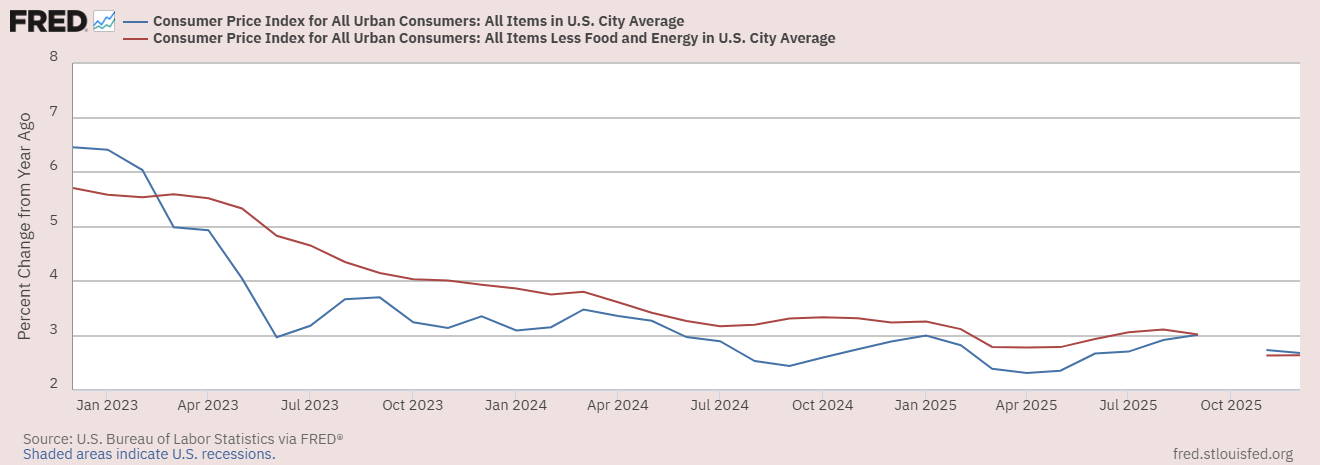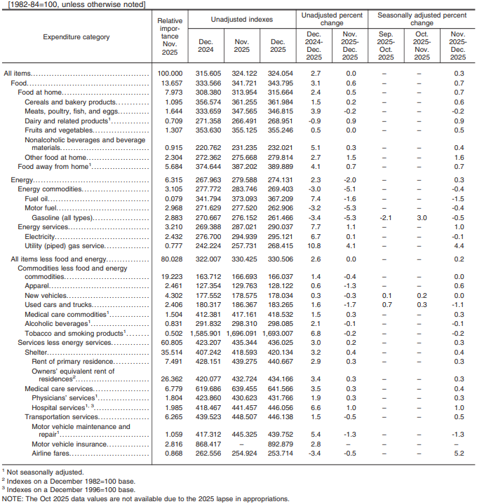 根據美國勞工部最新公布的數據,2025年12月CPI年增率為 2.7%,月增 0.3%,符合市場預期;核心CPI(剔除波動較大的能源與食品)年增 2.6%,略低於預期,顯示物價壓力趨緩。